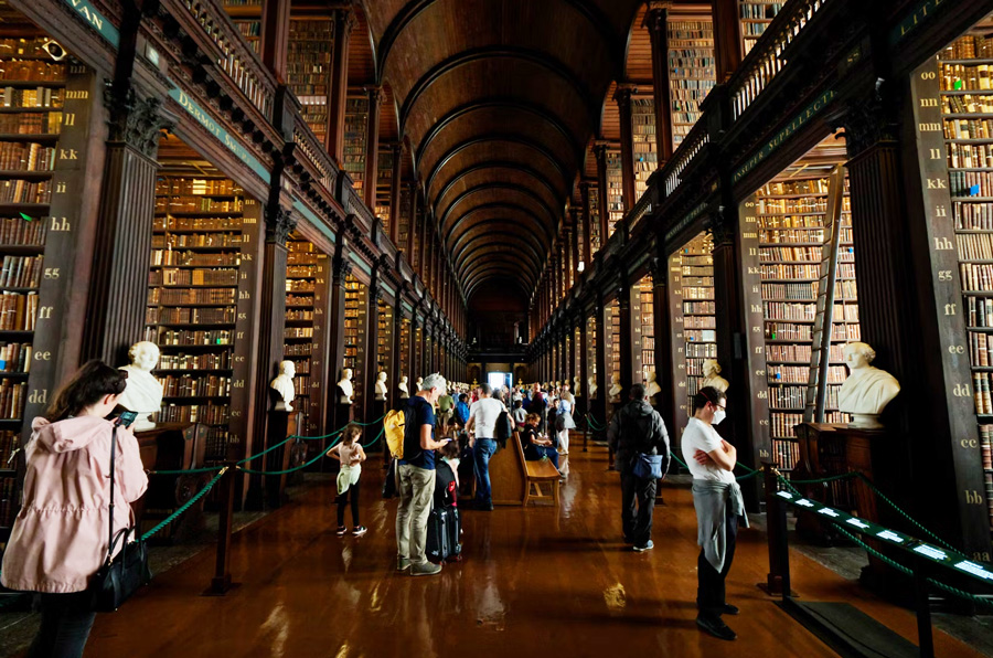 都柏林市區遊覽。梅瑞恩區遊覽喬治亞式建築形成的梅瑞恩廣場、★聖派翠克大教堂St. Partrick’s Cathedral及馳名的歐康諾大道。★三一學院Trinity College Library最古老的大學,此所名校孕育了無數的優秀人才,有諾貝爾獎得主、劇作家及政治家等;高20公尺的鐘塔於1853年所建造,老圖書館裡藏書20萬冊,最出名的是世界最古老的古書之一的《凱爾書》,是本牛皮製福音書,色彩繽紛,是愛爾蘭的珍寶。★健力士啤酒廠Guinness舉世聞名的金氏世界紀錄也來自愛爾蘭,1951年健力士啤酒廠的董事休.比佛在因緣際會下出版了記錄世界之最的書,取名健力士世界記錄,這本書後來被通譯為金氏世界紀錄,而健力士啤酒廠,生產愛爾蘭最著名與暢銷的啤酒,在啤酒花與大麥的香氣中了解健力士啤酒兩百多年的歷史,再來杯涼爽的黑啤酒便可了解健力士啤酒為何能征服眾多的啤酒愛好者。