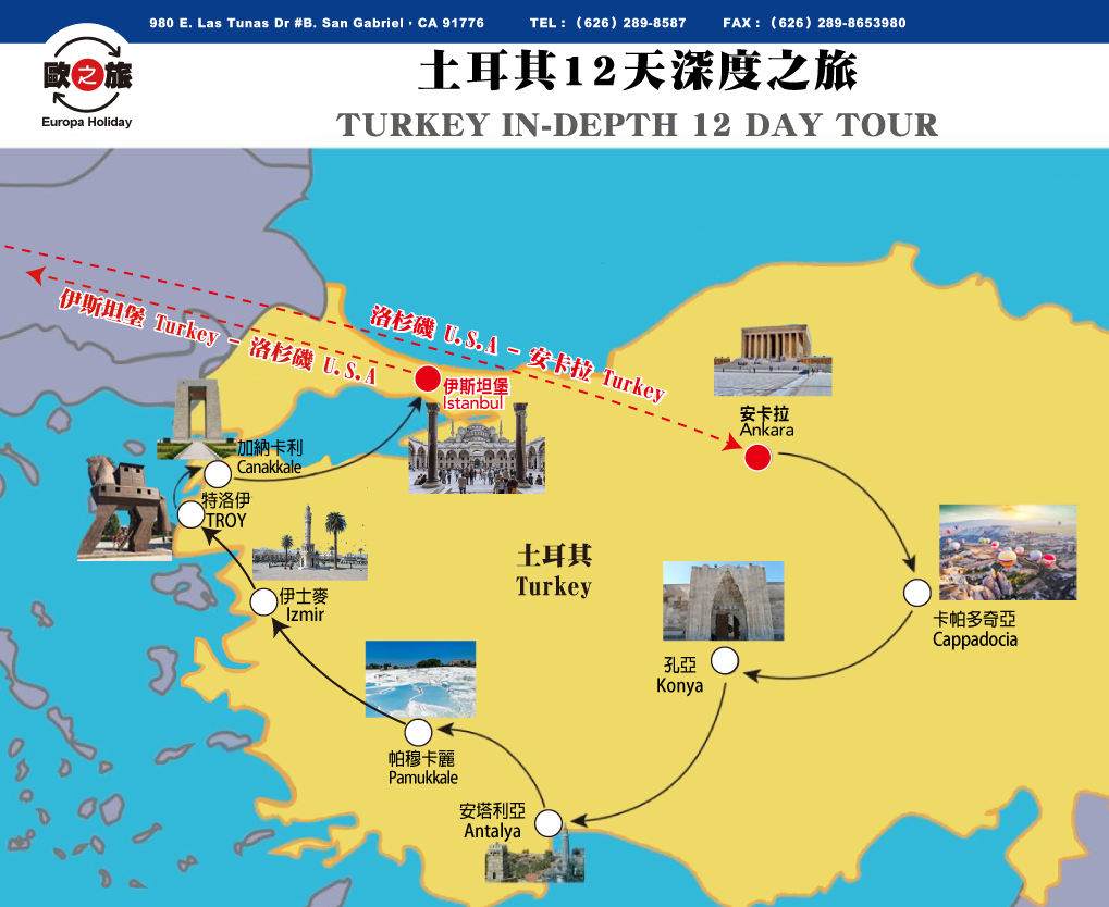 包含項目:4 & 5星級酒店、交通、門票、早午晚三餐、伊斯坦堡/安卡拉機票