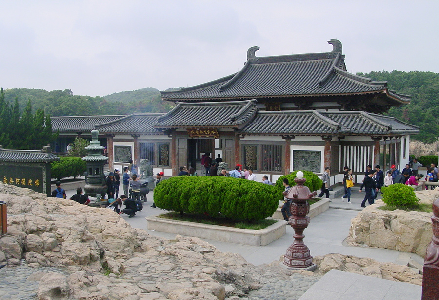 【普濟寺】 又叫前寺,坐落在白華山南,靈鷲峰下,是供奉觀音的主剎。全寺占地37019平方米,建築總面積15289平方米。它的前身為不肯去觀音院。寺內有大圓通殿、天王殿、藏經樓等,殿、堂、樓、軒計357間。大圓通殿是全寺主殿,人稱“活大殿”。