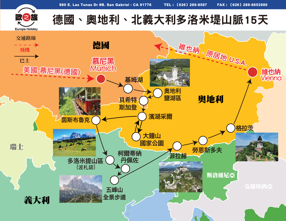 德國、奧地利、北義大利多洛米堤山脈15天(輕健行) |